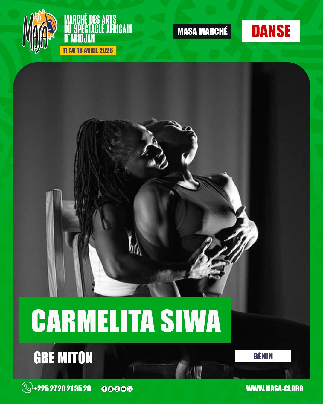 À la croisée de la rage urbaine et de la profondeur des rites traditionnels, Carmélita Siwa impose une signature chorégraphique singulière sur la scène contemporaine. Directrice artistique de la compagnie Arts Ca’Danser, elle fait de la scène un espace de revendication et de guérison, où le corps devient un langage politique. Alors que sa pièce phare, Gbé miton (« Nos voix »), s’apprête à faire vibrer le Masa 2026 après avoir été sacrée aux Jeux de la Francophonie, la chorégraphe béninoise se confie. Entre quête de pouvoir, émancipation féminine et structuration du métier, elle livre un plaidoyer vibrant pour une reconnaissance de la danse comme une véritable profession de l’esprit.